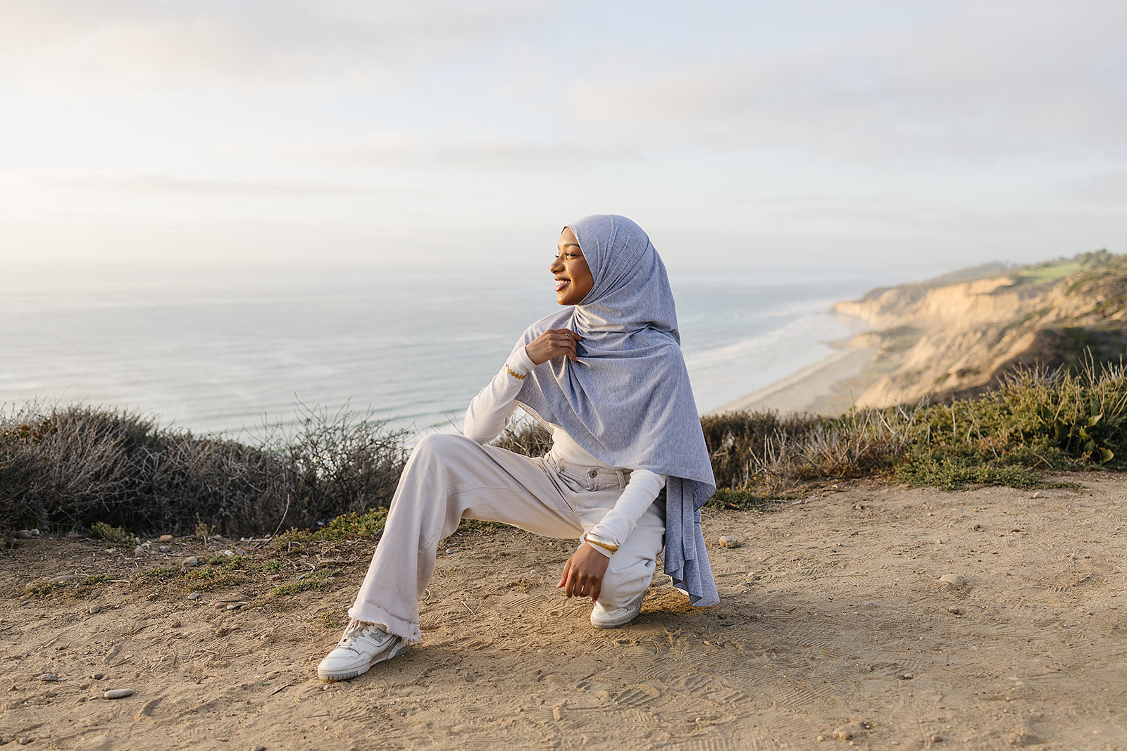This Art Deco-inspired hijab showcases bold geometric patterns with a modern twist. After hand-sketching the design, Erum digitized it for precise printing on premium Soft Bamboo Modal fabric, available in three stunning colors: tan, lilac, and charcoal.