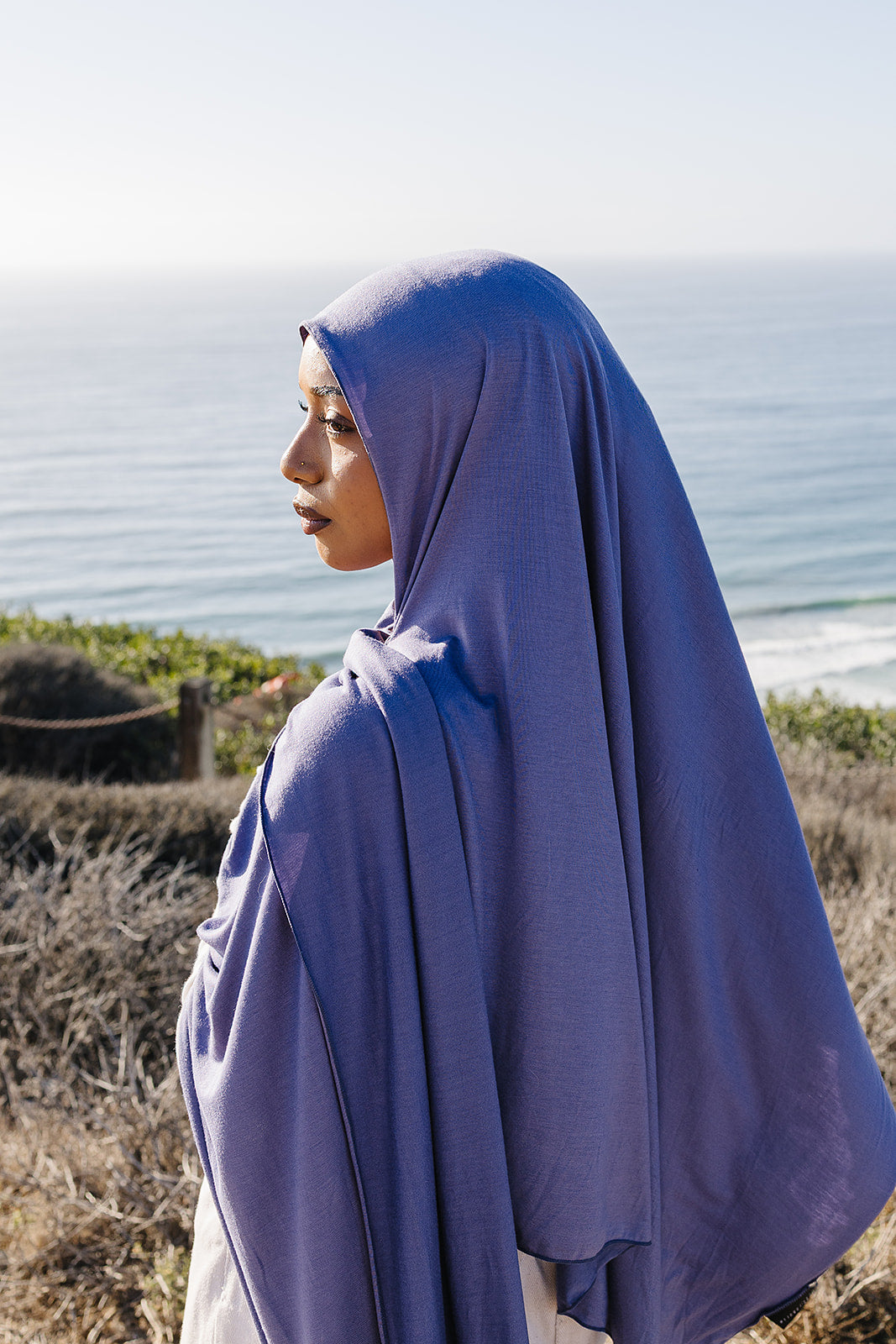 This Art Deco-inspired hijab showcases bold geometric patterns with a modern twist. After hand-sketching the design, Erum digitized it for precise printing on premium Soft Bamboo Modal fabric, available in three stunning colors: tan, lilac, and charcoal.
