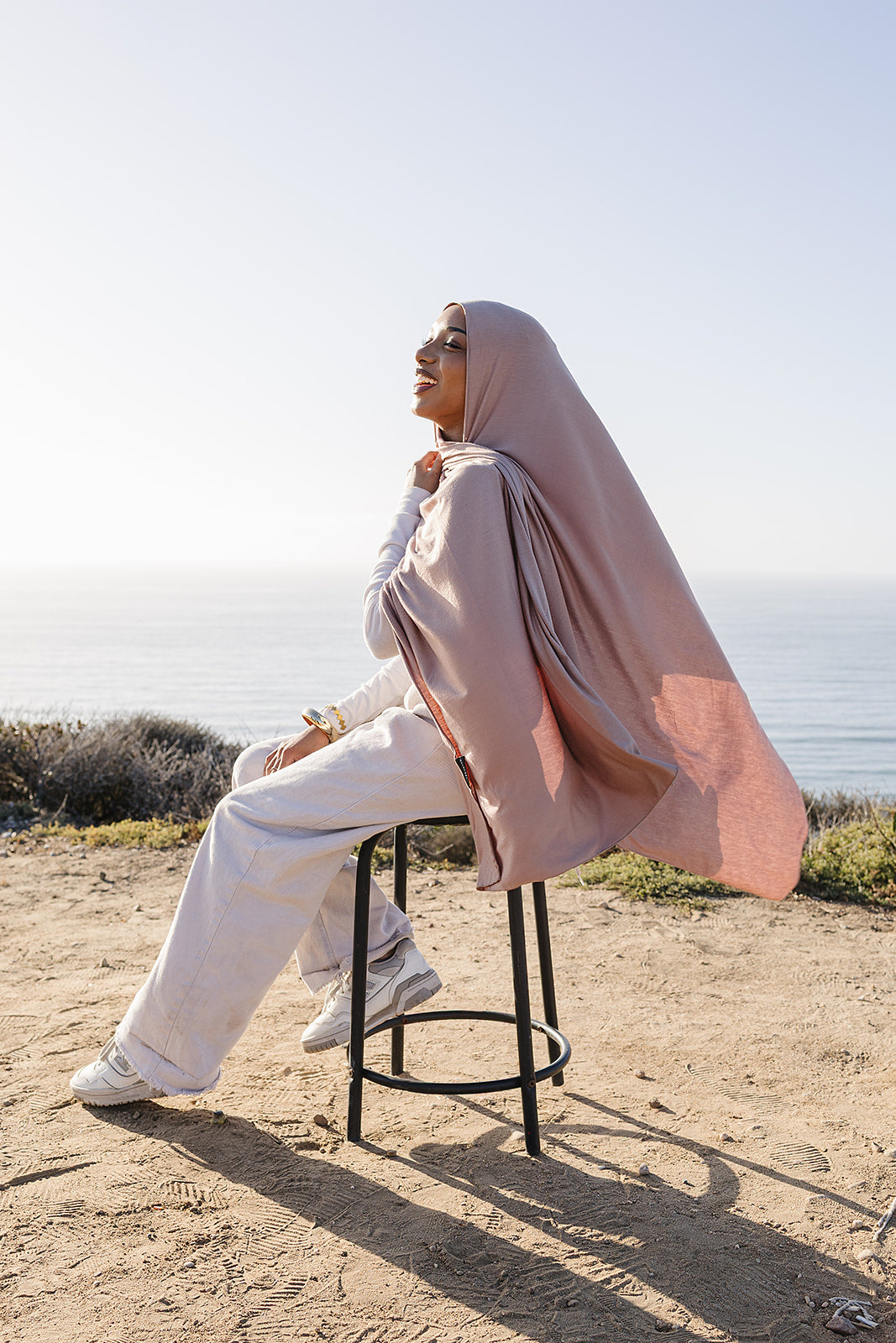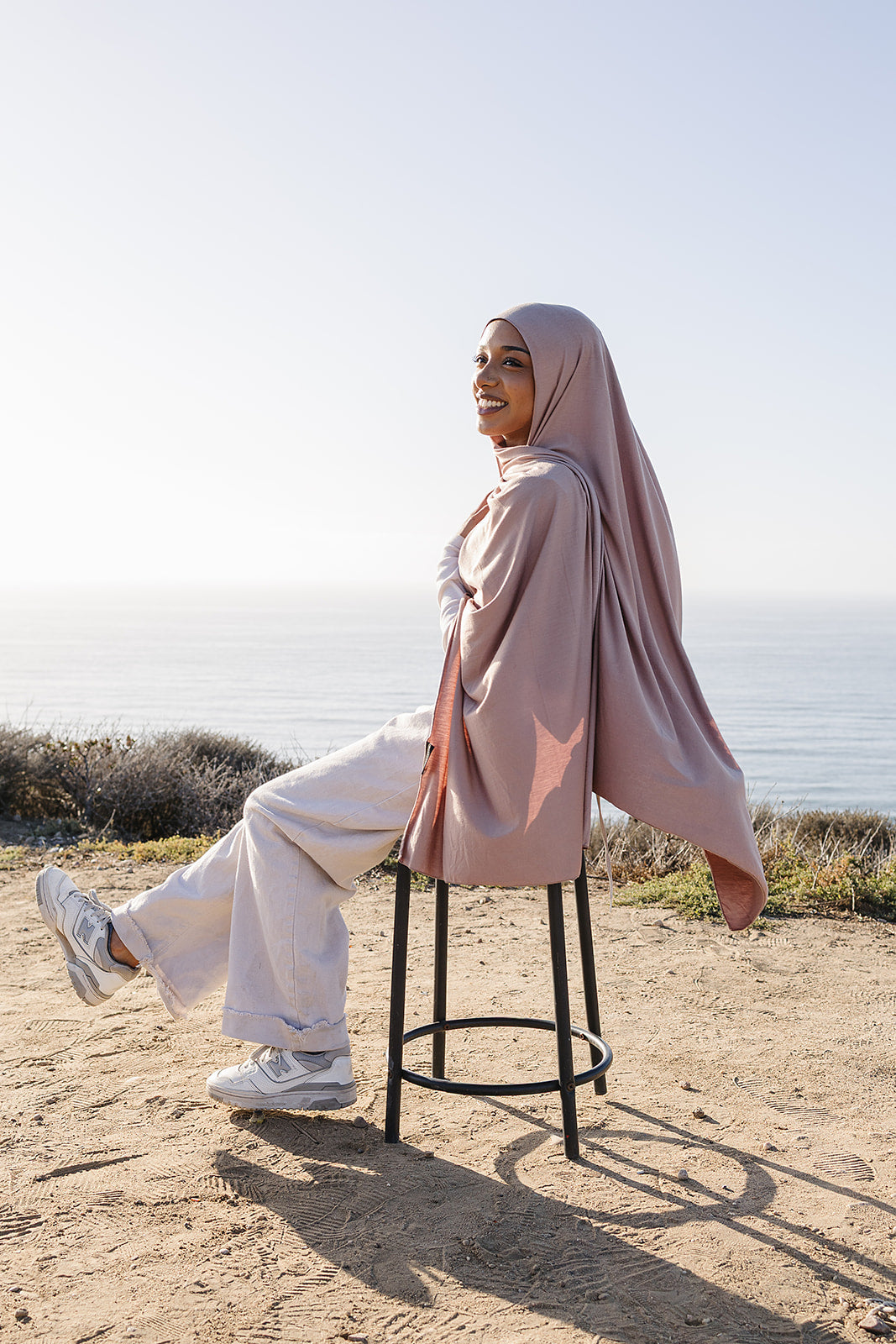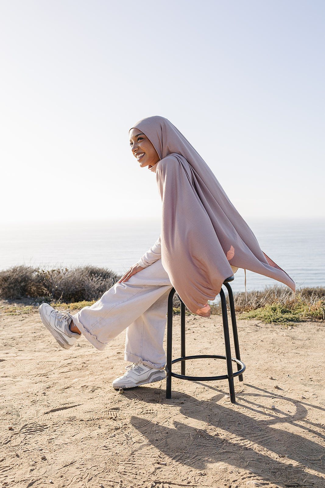 This Art Deco-inspired hijab showcases bold geometric patterns with a modern twist. After hand-sketching the design, Erum digitized it for precise printing on premium Soft Bamboo Modal fabric, available in three stunning colors: tan, lilac, and charcoal.